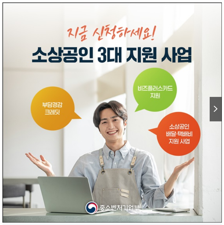 중소벤처기업부(중기부)는 고금리·고물가로 어려움을 겪는 소상공인의 경영 부담 완화를 위해 부담경감 크레딧, 비즈플러스카드, 배달·택배비 지원 사업으로 구성된 3대 지원사업을 본격적으로 시행합니다.